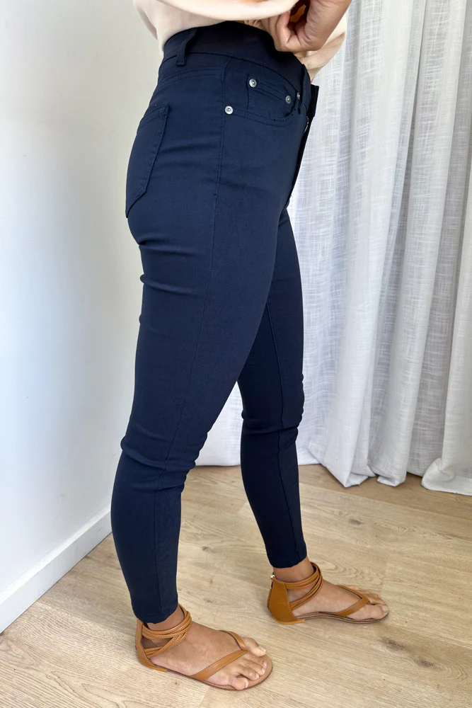 Pretty much the comfiest navy pant EVER but in petite size. I want to say they’re jeans but they’re not, they’re actually pants. They feel really good on, they’re SUPER stretchy, and you’ll like them. Promise.