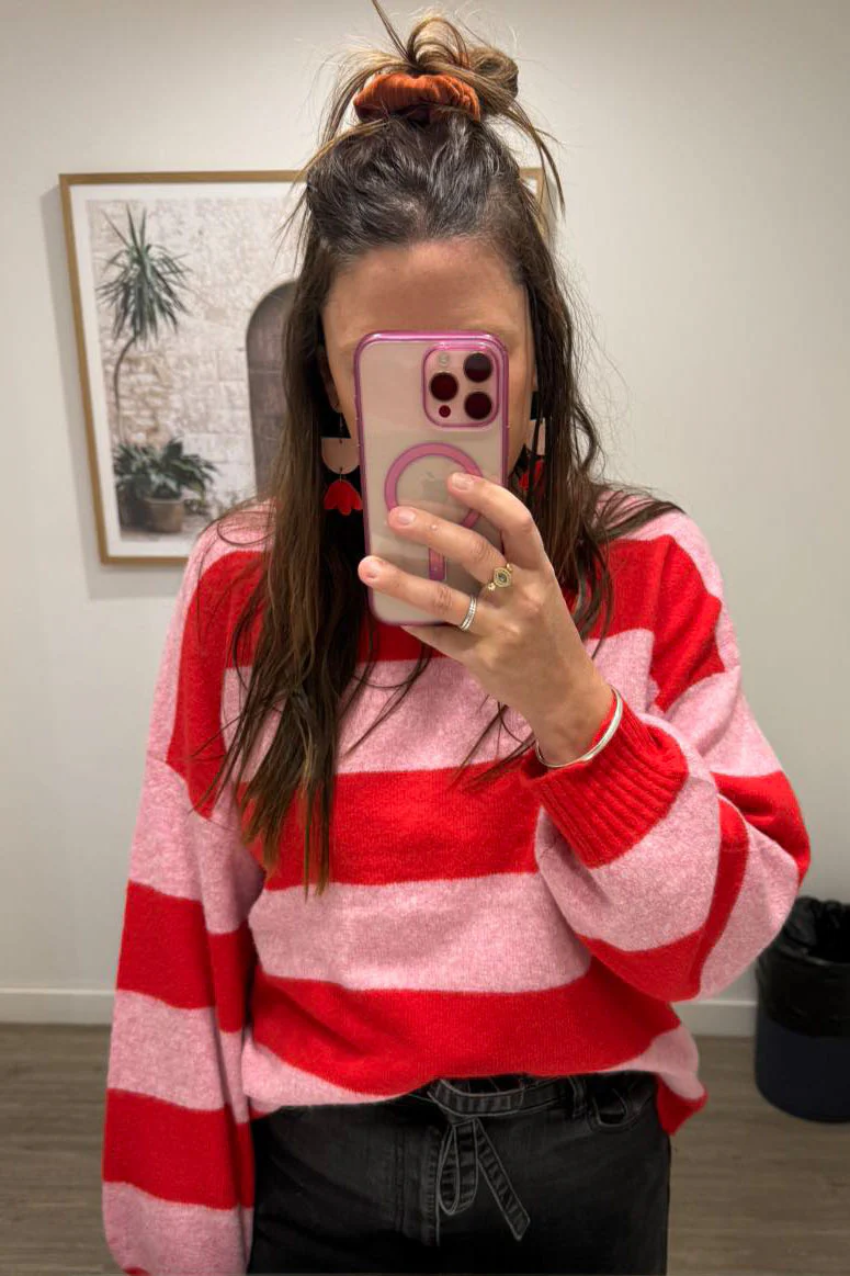 Raye Knit - Pink Red Stripe