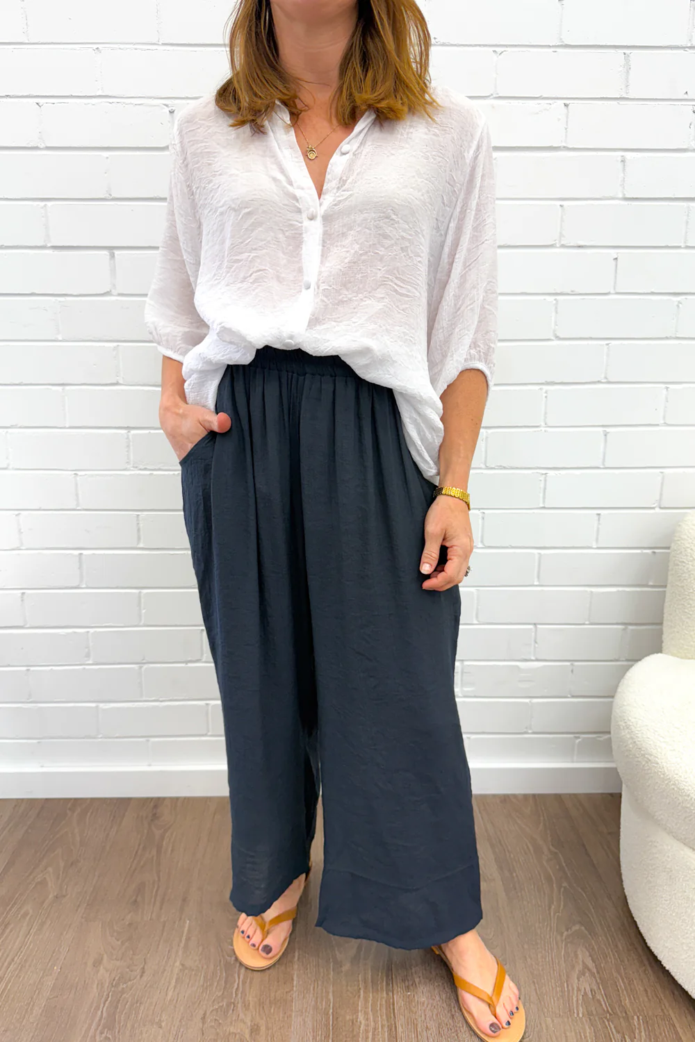 Lightweight and LOVELY, they feel sooooo good on, so so good, and the elastic waist is utter perfection. Wear them on their own or as a set with your Tibet Shirt. A classic shape in a beautiful, lightweight fabric, you will actually love wearing them.