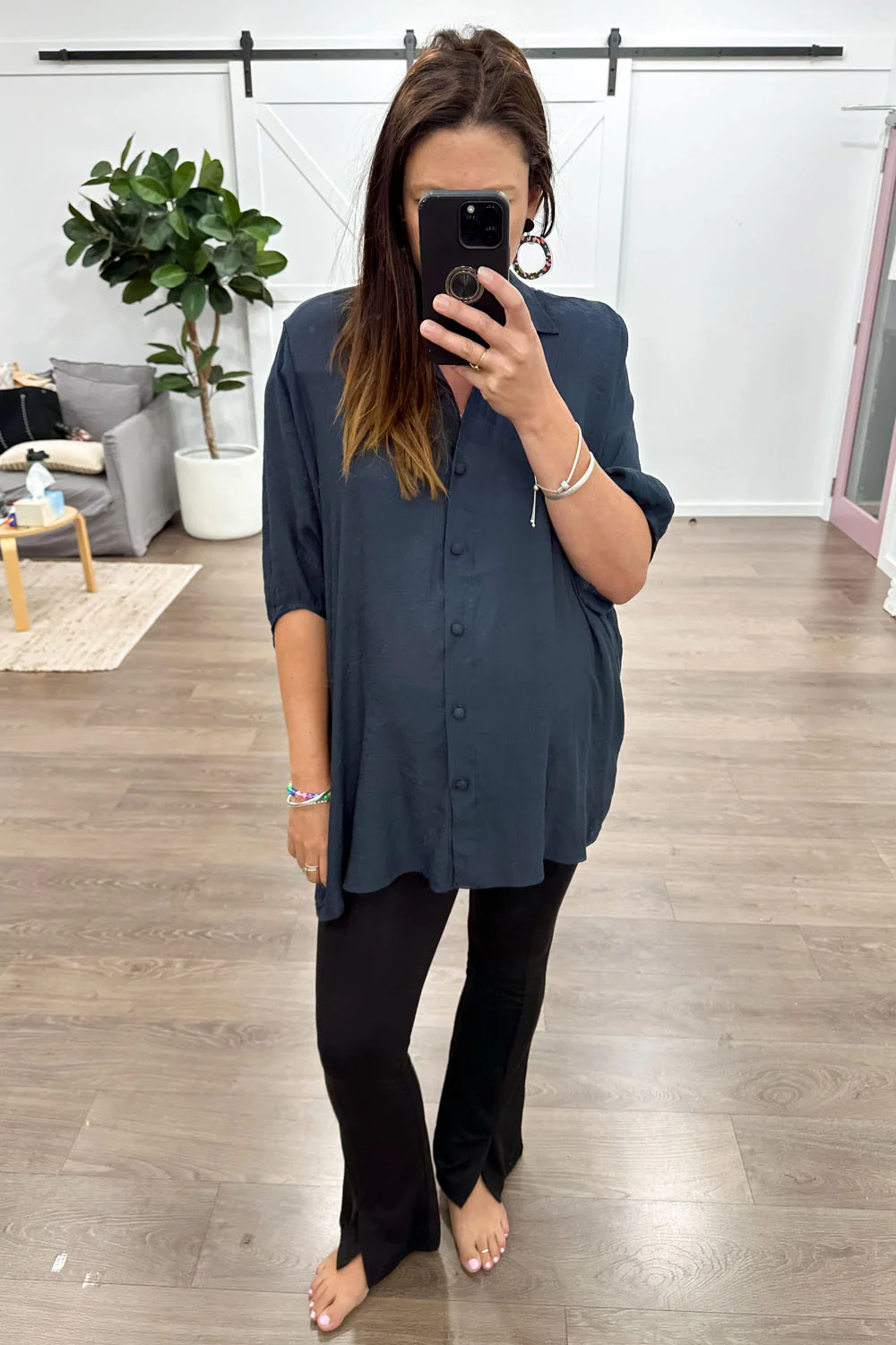 Oversized perfection. Honestly, the BEST oversize navy shirt you will ever own, you seriously won't want to take it off.